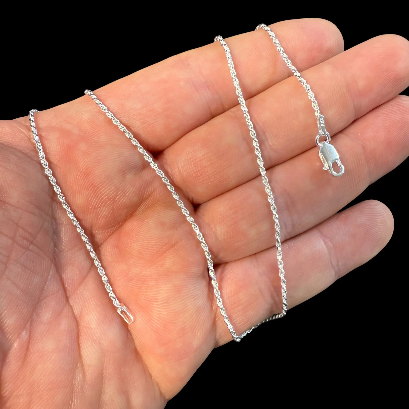 1.5mm Diamond Cut Rope Chain – Available in 925 Sterling Silver, Rhodium, 14k Gold Vermeil, and 14k Rose Gold Vermeil
