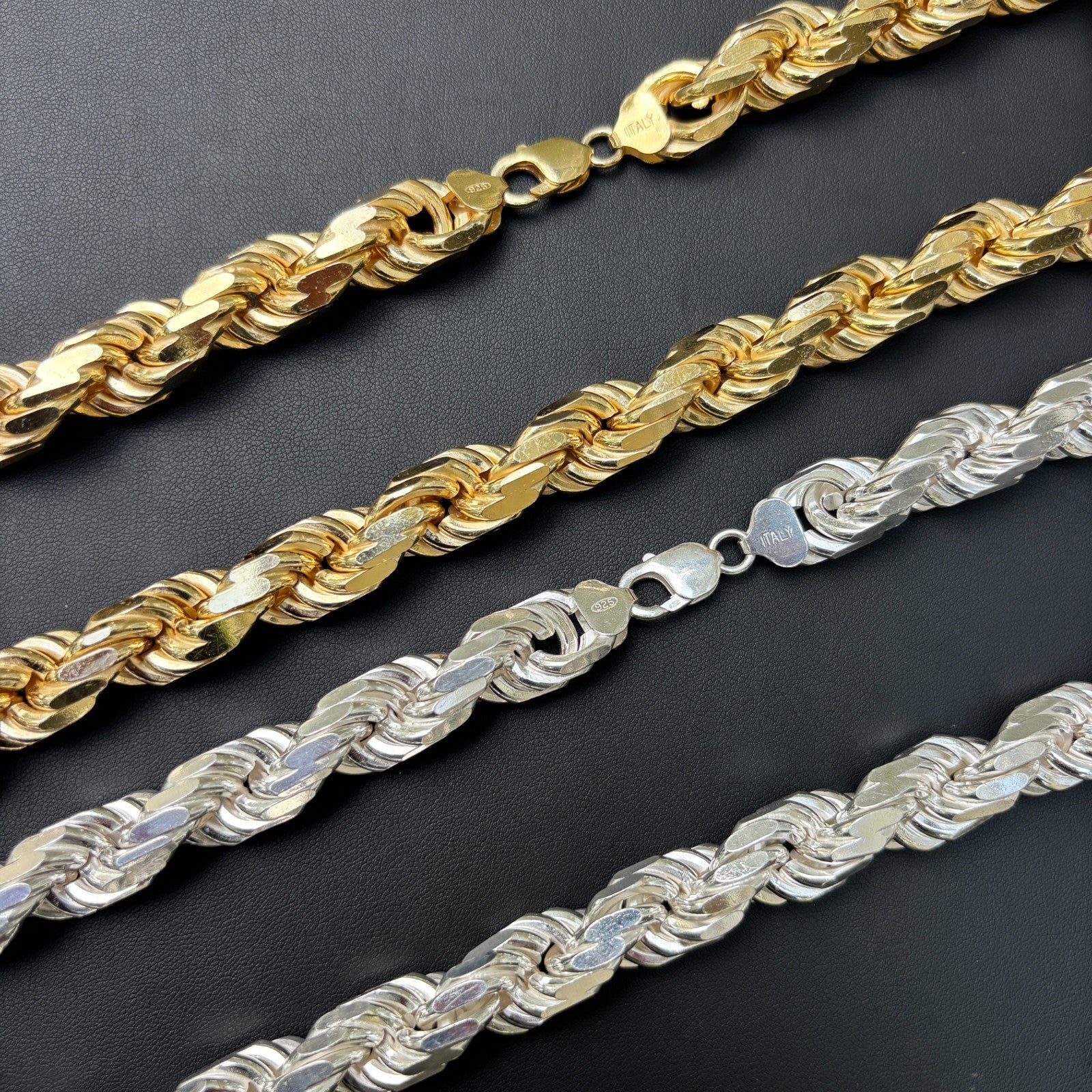 14mm Diamond Cut Rope Chain - 925 Sterling Silver or 14k Gold Vermeil