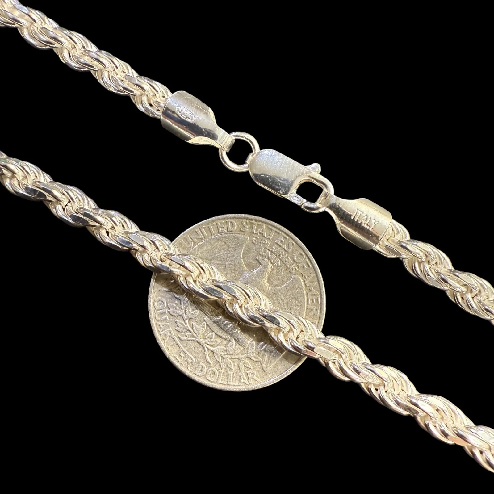 5mm Diamond Cut Rope Chain – Available in 925 Sterling Silver, Rhodium, 14k Gold Vermeil, 14k Rose Gold Vermeil, and Tri-Color