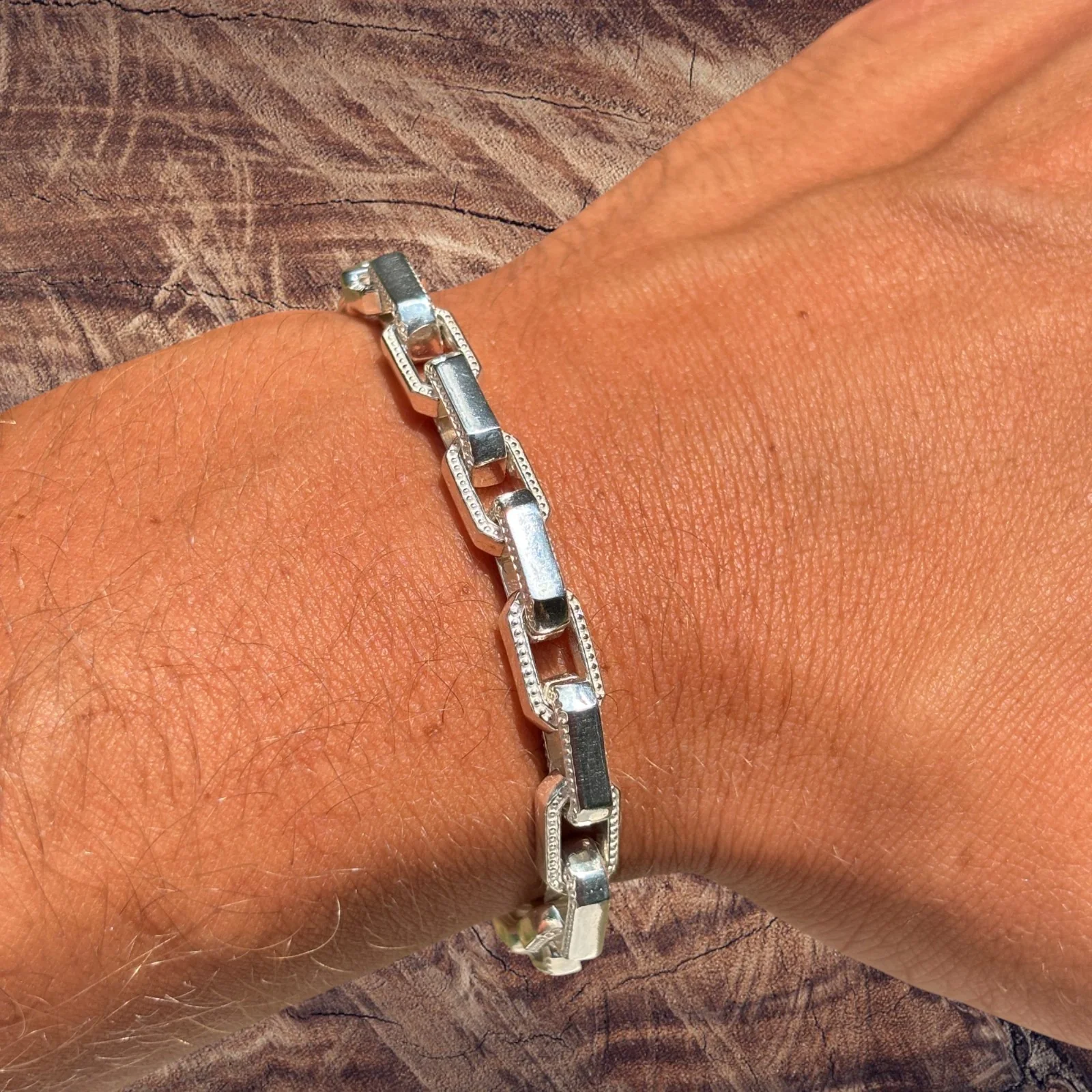 Stand out with this 7mm Hermes Link Rolo Bracelet , a handmade custom design crafted from solid 925 sterling silver and made in Italy . You won't find this exclusive link anywhere else, crafted with bold, rounded rolo style links and a striking 3D structure, it's a standout piece for anyone.