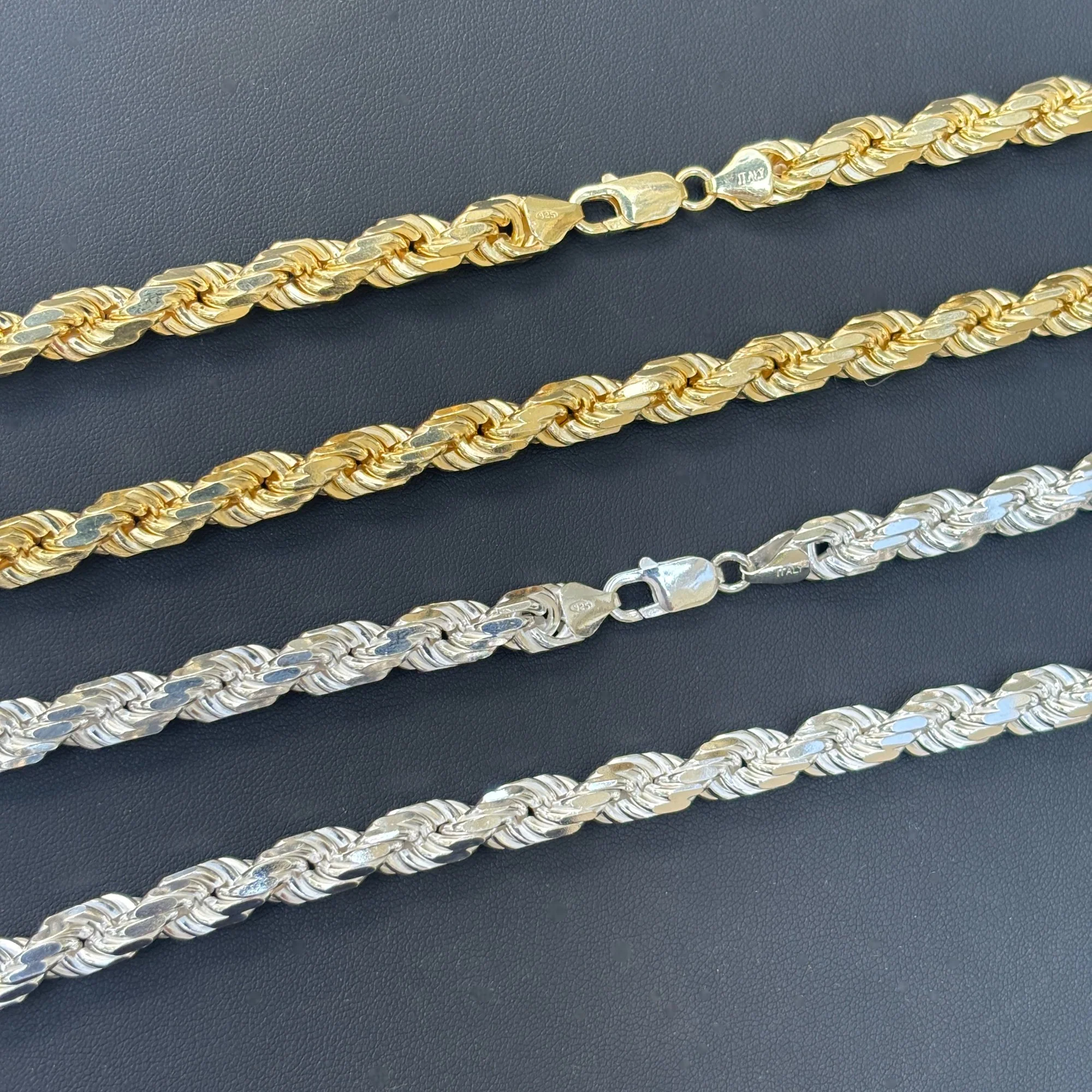 8mm Diamond Cut Rope Chain - 925 Sterling Silver or 14k Gold Vermeil