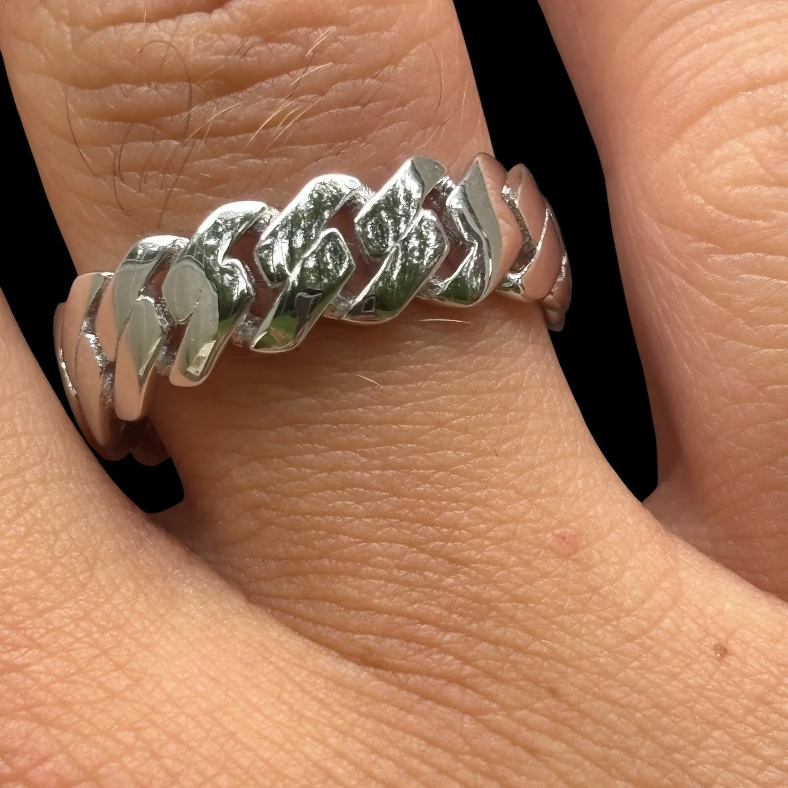 Amazing Prong Cuban Link Ring – Solid 925 Sterling Silver or 14k Gold Vermeil